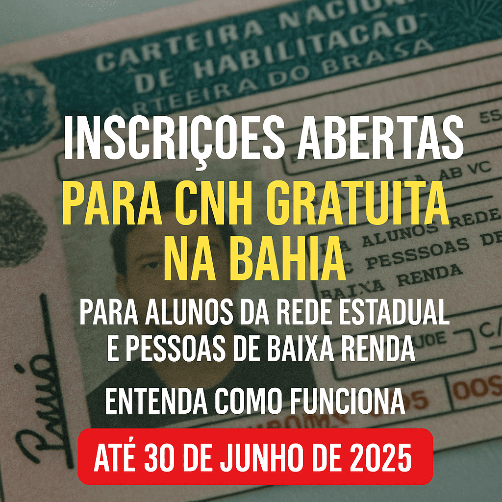 O Estado abriu 12 mil vagas para que estudantes da rede estadual e pessoas registradas no CadÚnico consigam a Carteira Nacional de Habilitação (CNH) totalmente gratuita — inclusive com isenção de exames, taxas e aulas práticas. A proposta, segundo o governo da Bahia, visa “promover justiça social e inclusão”. Mas será que isso é feito de forma justa e responsável?